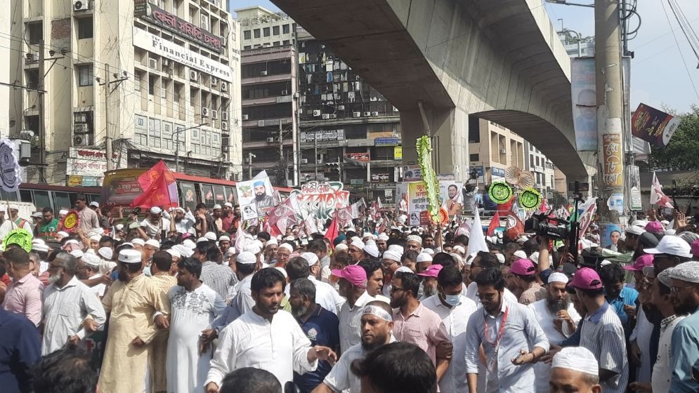 “সোজা আঙুলে ঘি না উঠলে বাঁকা করব, ঘি আমাদের লাগবেই”—এমন মন্তব্য করেছেন বাংলাদেশ জামায়াতে ইসলামীর নায়েবে আমির ডা. সৈয়দ আব্দুল্লাহ মোহাম্মদ তাহের। তিনি বলেন, “প্রয়োজনে আবার জীবন দেব, জুলাইয়ের চেতনা ভূলুণ্ঠিত হতে দেব না।” বৃহস্পতিবার (৬ নভেম্বর) রাজধানীর পল্টনে আয়োজিত সংক্ষিপ্ত সমাবেশে তিনি এসব কথা বলেন। জামায়াতসহ আটটি ইসলামী দল বিস্তারিত..